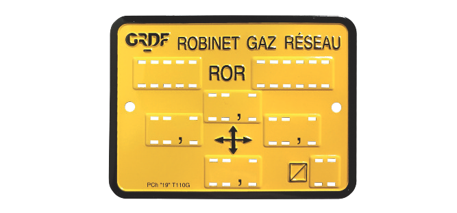 Plaque de repère de robinet de réseau avec dimension carré de manoeuvre T110G – par 25