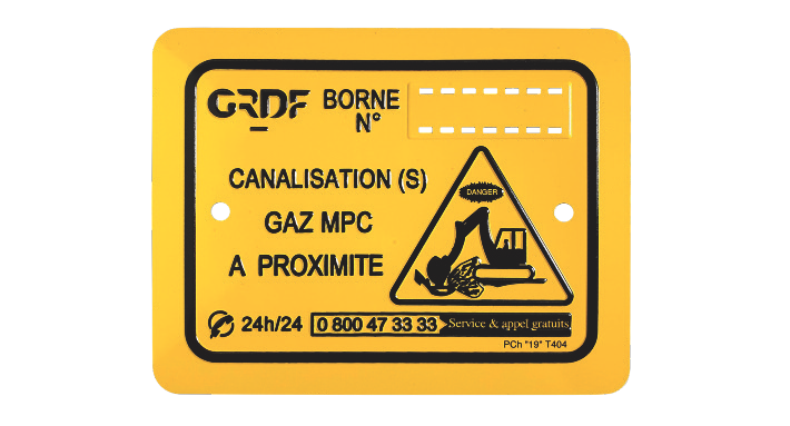 Plaque repérage type T404 avec sur plaque intégrée pour canalisation MPC MPLC014 – par 25