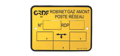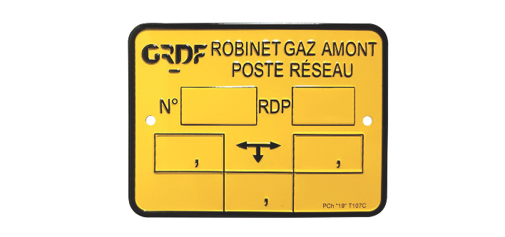 Plaque repère et d’identification de robinet gaz amont poste réseau type T107 à frapper – MPLC006 – par 25